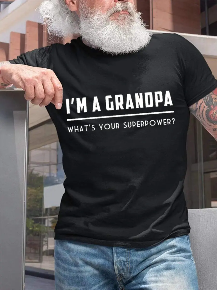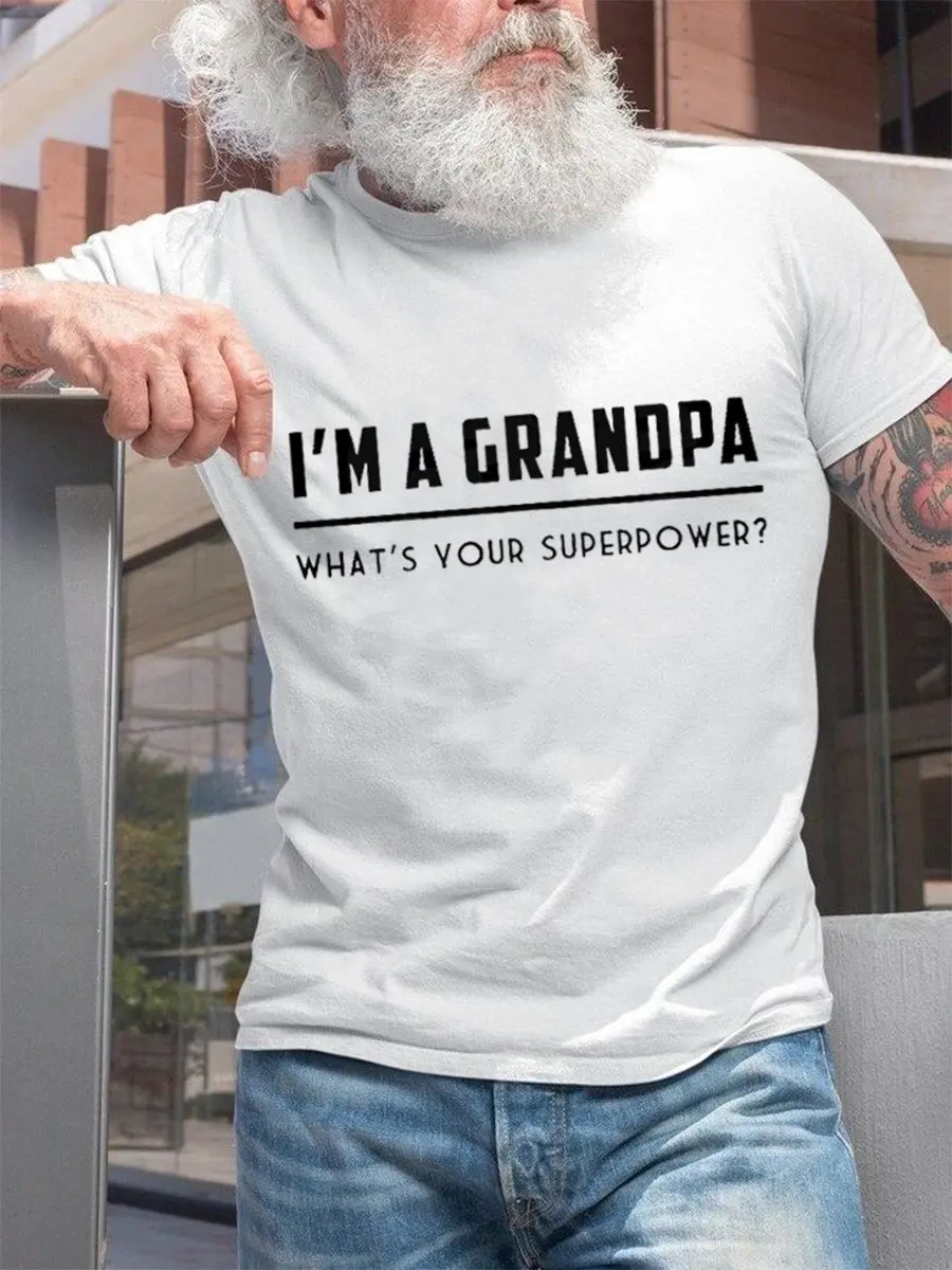 Funny Graphic Letter Tee ShirtsI’m A Grandpa What’s Your Superpower Casual Short Sleeve T-Shirt